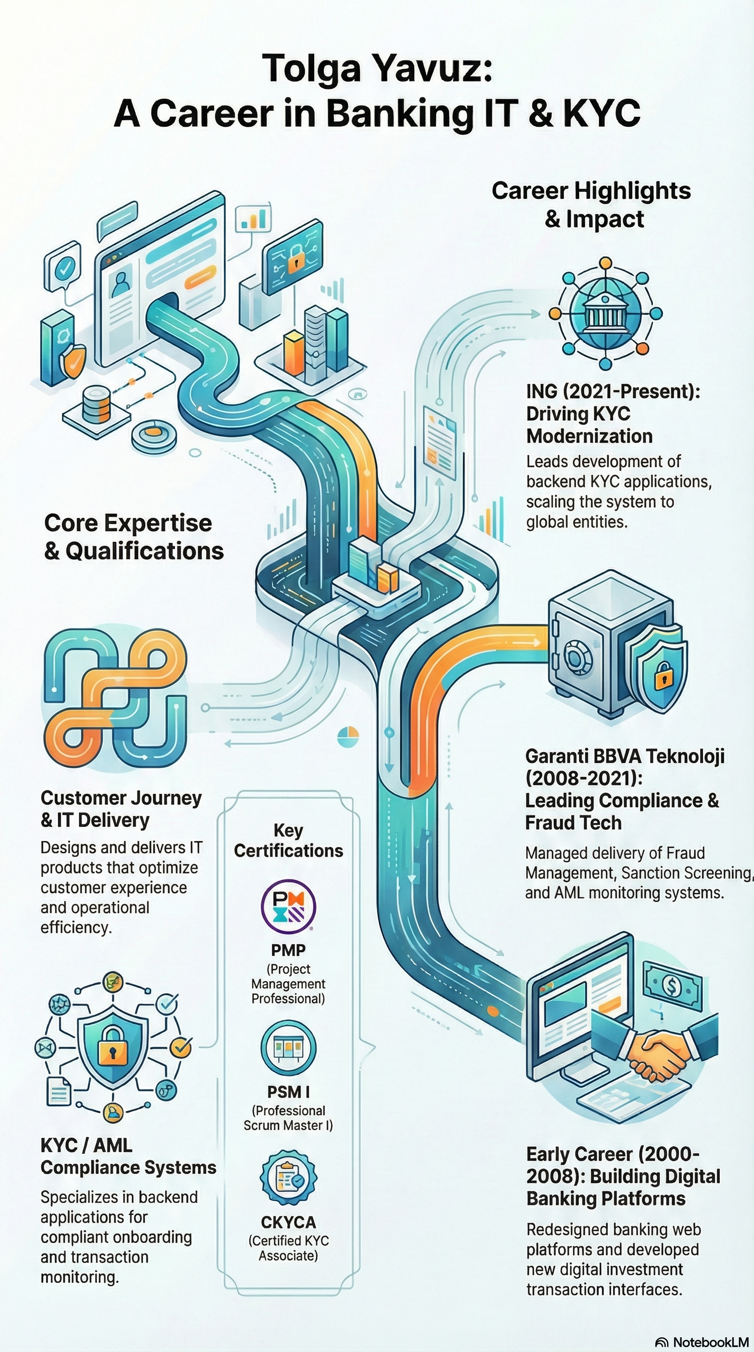 Hi, I am Tolga Yavuz. Based in Amsterdam, I am a results-driven professional with extensive experience in IT project delivery, customer journey design, and KYC/Compliance solutions. My career has been defined by a unique ability to bridge the gap between complex regulatory demands and the creation of scalable IT products that prioritize a seamless customer experience.
